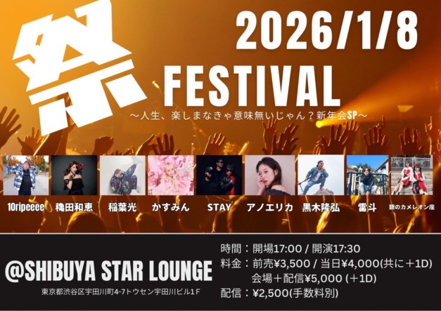 【2026年】 1/8(木) 17:30~ 渋谷star lounge 1/8 祭(フェスティバル) ~人生、楽しまなきゃ意味無いじゃん?新年会SP〜 【2025年】 12/22(月) 18:30~ SHIBUYA D…