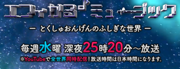 千葉テレビ「エフィかる♪ミュージック~とくしゅおんげんの不思議な世界~」2/2〜4/29 毎週水曜日25:20~25:50前半MCは大江翔萌美さん、後半第7回以降が穐田和恵さん、解説は谷内和俊さん Youtubeで見逃し…