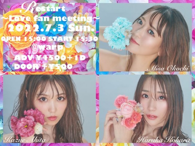 新体制になった𝓡のファンイベントが開催されます。 日時 2022年7月3日(日) 開場 15:00 開演 15:30場所 渋谷warp 東京都渋谷区宇田川町17-1-7F 出演 穐田和恵、大河内美沙、小原春香 チケット予…